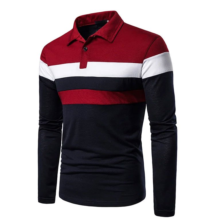 Polo à manches longues avec revers en patchwork 3 couleurs